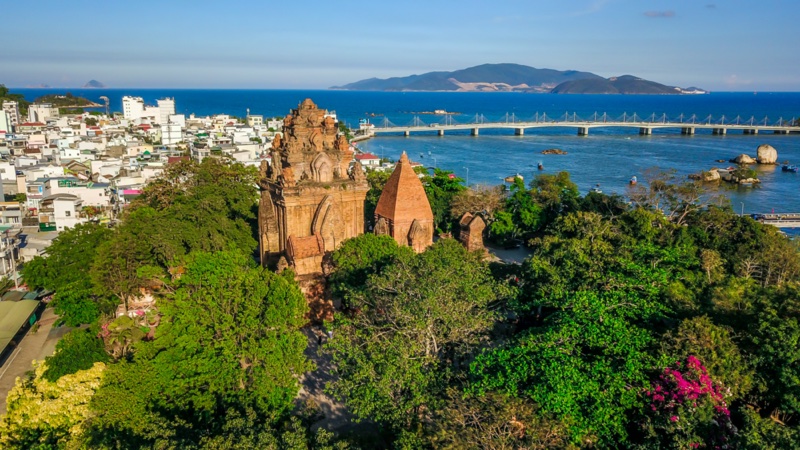 The historic Po Nagar Cham Towers remain a vital cultural landmark in Nha Trang City. These ancient structures, constructed by the Cham civilization between the 7th and 12th centuries, were used for worship. The site features several well-preserved red-brick temples, a statue of the goddess Yan Ino Po Nagar, and four iconic towers with elevated roofs. Accessible to visitors, the towers offer a glimpse into Cham architecture and spirituality.
