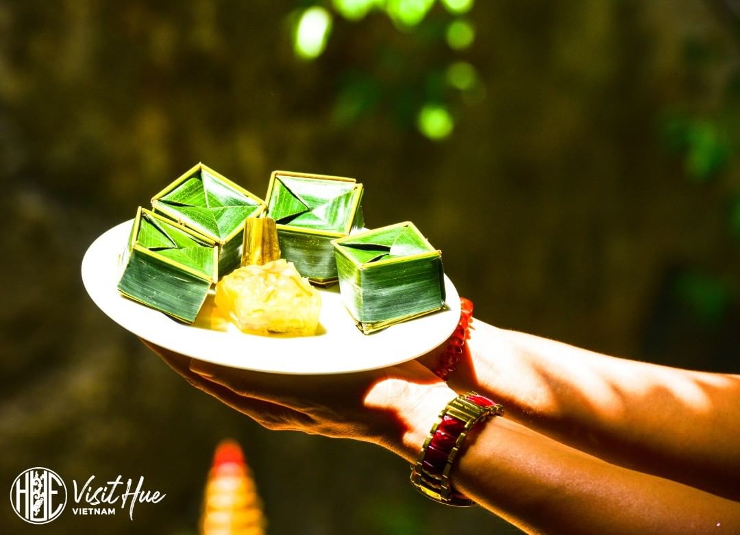 Originating from Dinh Bang, a historical site linked to the Ly dynasty, this delightful pastry is considered a royal treat. The husband-and-wife pies have journeyed from their birthplace to the imperial city of Hue. True to their name, these pastries come as pairs, wrapped in dried banana leaves, with their golden yellow complexion creating a striking contrast against the brown leaves. Each pie is crafted with rice surrounding a sweet filling made from finely ground green beans, sugar, and occasionally shredded coconut. This sweetness symbolizes the love and unity between couples.