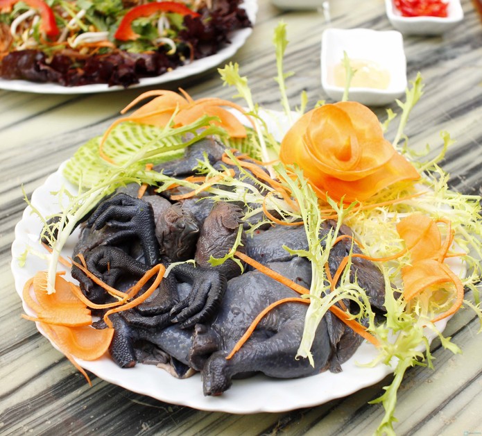 Hung Yen also boasts another unique specialty: Dong Cao chicken, a breed native to Khoai Chau district. Known as the “elephant-footed” bird for its size, it can weigh up to 15 pounds. Though difficult to raise and requiring careful attention, the older the chicken grows, the better its meat becomes, noted for its distinct taste. Renowned dishes often include “dragon slow cooked with herb,” with the term “dragon” referring to the chicken’s large feet. Purebred Dong Cao chickens are rare and highly prized, with some owners rumored to have built underground shelters to protect them during outbreaks of avian flu.