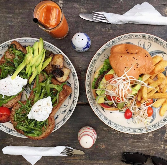 Maison de Tet Décor blends serenity with its flower-filled courtyard and lush terrace across two levels. This café stands out by offering all-day breakfast options, including delicious variations of classics like eggs Florentine partnered with herbed potato cakes and French toast drizzled with passion fruit syrup. All the fruits and herbs utilized here are sourced from local growers. Prices for their generously sized dishes range from 60,000 to 130,000 VND.