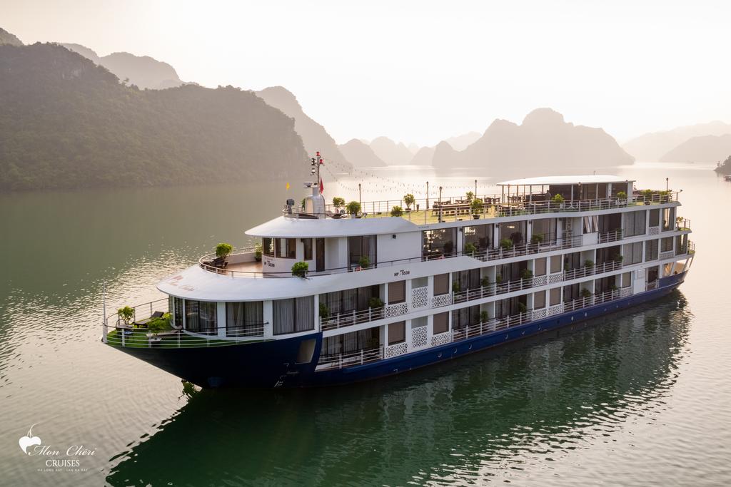 Mon Cheri Cruise exemplifies luxury in Halong Bay with its modern design and speed. As one of the latest non-wooden vessels in Lan Ha Bay, it features expansive cabins and unparalleled service. Guests can enjoy delicious meals in the Halal kitchen, which offers a fusion of Vietnamese and international cuisine while soaking in the stunning views. Facilities include a 24/7 fitness center and spa for relaxation, and the cruise provides a convenient 2-hour transfer from Hai Phong pier to Halong Bay, making the journey more enjoyable.