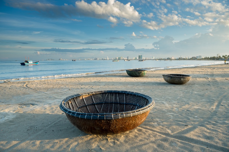 Danang beach is among the most beautiful beaches in Vietnam, with white sand and luxury resort lining the 30km stretch.