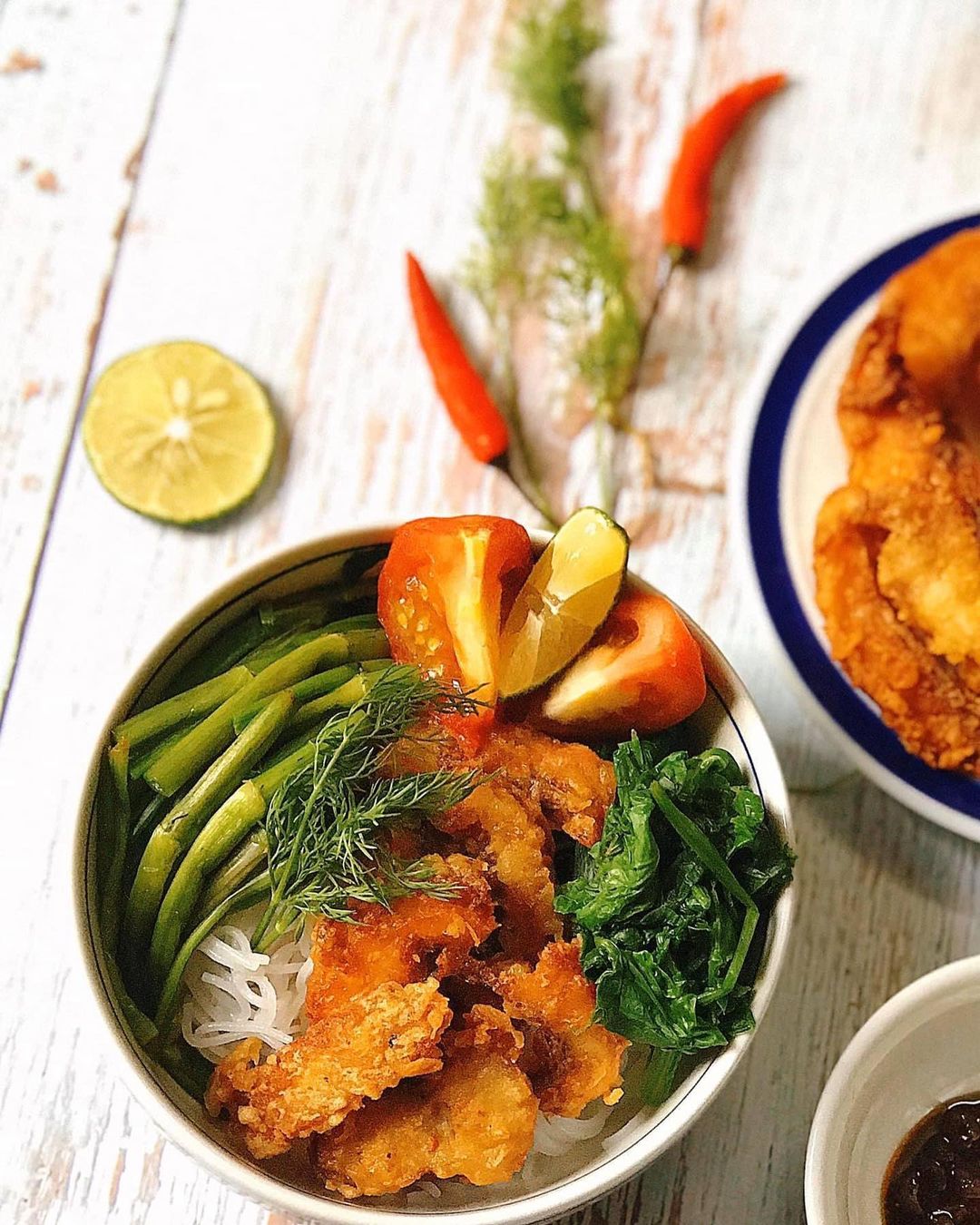 Locally referred to as "bun ca", this unique rice noodle soup featuring grilled fish tantalizes the taste buds of every visitor. Many stalls offering this dish can be found along the main streets of Nha Trang. A bowl of "bun ca" is prepared using a medley of fresh ingredients such as soft rice noodles, a light sweet broth made from fish heads, tomatoes, onions, and pineapples, topped with crispy grilled fish. It's often accompanied by bean sprouts, assorted vegetables, and a savory fish sauce for added flavor.