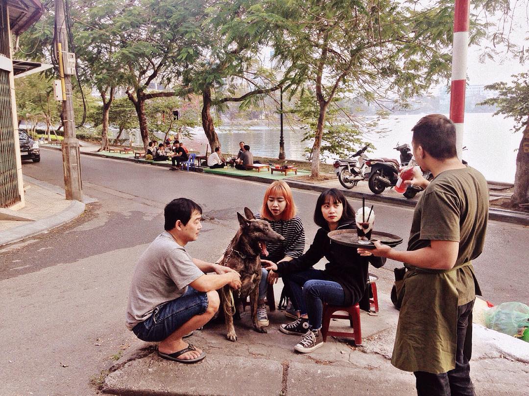 Hanoians enjoy food and drink on the sidewalk near Truc Bach Lake - Photo: @lainkst.targ