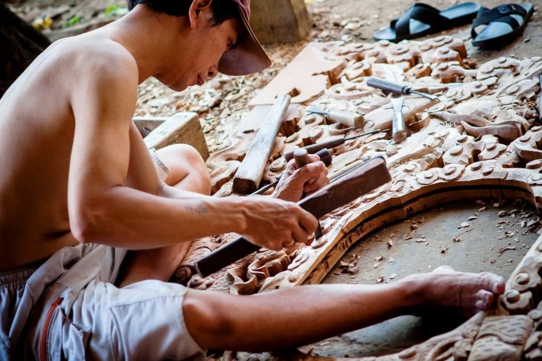 Today, trips to Kim Bong Carpentry Village often take the form of a half-day bicycle tour, enabling visitors to observe artisans skillfully engage in their work. Kim Bong is well-known for its diverse range of products, including furniture, religious statues, and intricately designed wooden doors, all of which are available for purchase in local souvenir shops. Prices vary from affordable coasters and trinkets to significant religious sculptures costing thousands of dollars. Many artisans have also transitioned to restoring historical monuments, particularly focusing on the preservation of old houses in Hoi An.