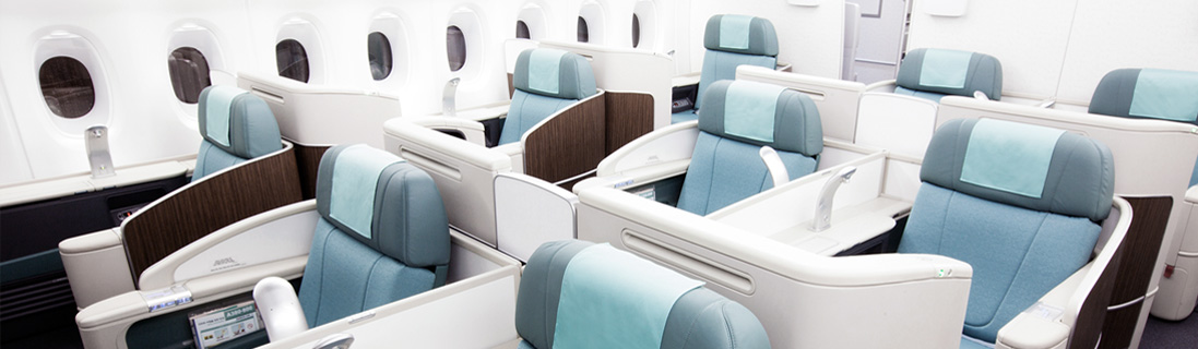 The Prestige Class on Korean Air offers enhanced comfort, featuring seats that can be converted into fully flat beds for sleeping. Each seat includes controls for adjusting position and an AC outlet for electronic devices. Passengers enjoy a personal 15.4-inch LCD screen and an entertainment system with a variety of options, including movies, music, and games. Meals in this class are meticulously prepared with high-quality ingredients and served in a manner reminiscent of top restaurants, featuring a diverse menu with dishes and beverages from Korea and around the world.