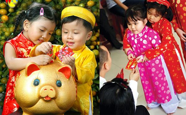 However, some deities, visiting a village, transformed into gold coins. Parents would wrap these coins in red cloth and place them under their child's pillow. When Tuy arrived, the shiny coins would glitter, scaring him away. This story spread quickly across the country, and since that time, Vietnamese families have continued the tradition of giving small children lucky money in red envelopes on the first day of the Lunar New Year.