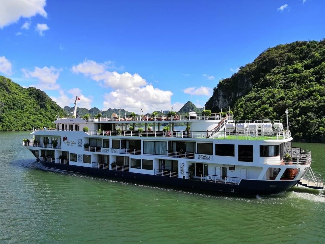 Launched in 2018, Ambassador Cruise boasts itself as a luxurious floating hotel on Halong Bay. Among the largest vessels in the area, it offers 46 high-end cabins spread across 5 decks. Notable for its expansive two-story sundeck, the cruise provides ample space for relaxation and a spectacular perspective of the bay.