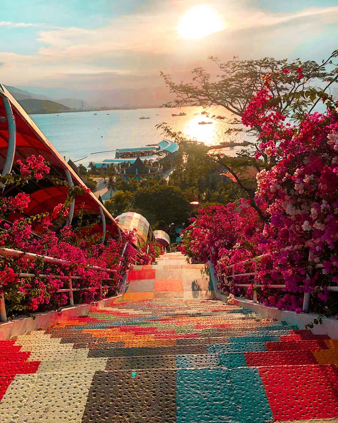 The city of Nha Trang blends serene landscapes with modern urban life, backed by lush green mountains and offering a long stretch of stunning white sand. This harmonious mix of human-made structures and natural wonders complements the crystal-clear waters that meet the deep blue sky, making it one of Vietnam's most picturesque destinations. Recent enhancements to the beachfront have resulted in beautifully maintained parks, creatively designed sculpture gardens, and rows of meticulously trimmed trees, providing tranquil alternatives to the beach for leisurely walks.
