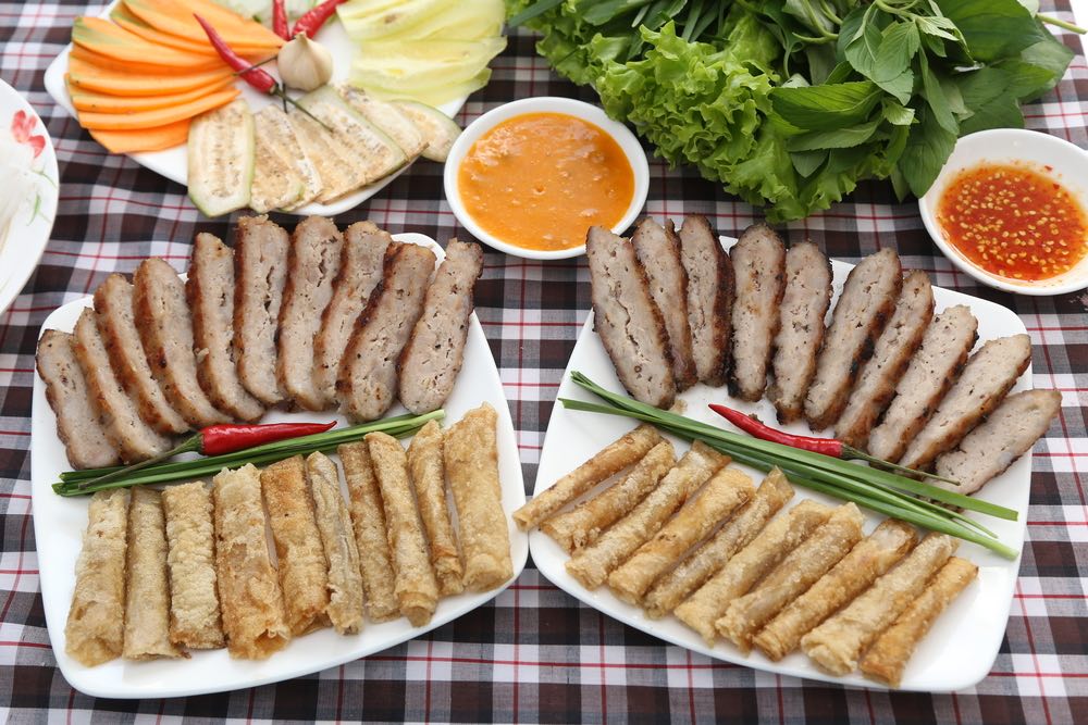 Nem Nuong, or grilled fermented pork roll, has established itself as an iconic dish of Nha Trang. Ingredients typically include rice vermicelli, carrots, cucumbers, lettuce, and green mango, all wrapped in rice paper and served with a sweet, sour, and spicy dipping sauce. Since each ingredient is provided separately, diners can create their personalized Nem Nuong Nha Trang to suit their taste.