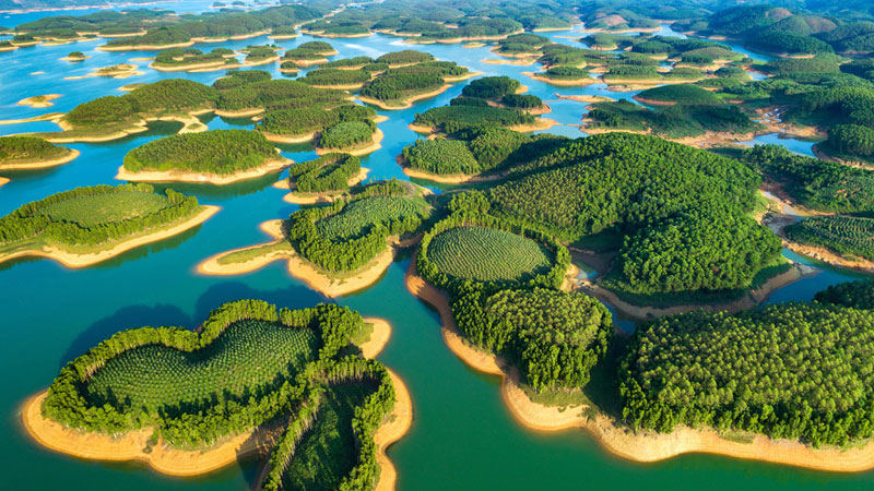 Thac Ba Lake is dotted with over 1,300 lush islands that contribute to its stunning scenery, earning it the nickname "Halong Bay in the mountains."