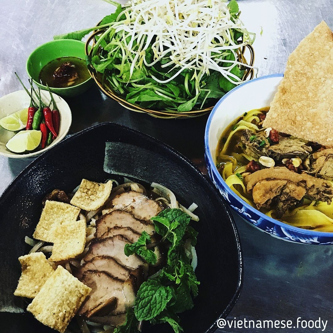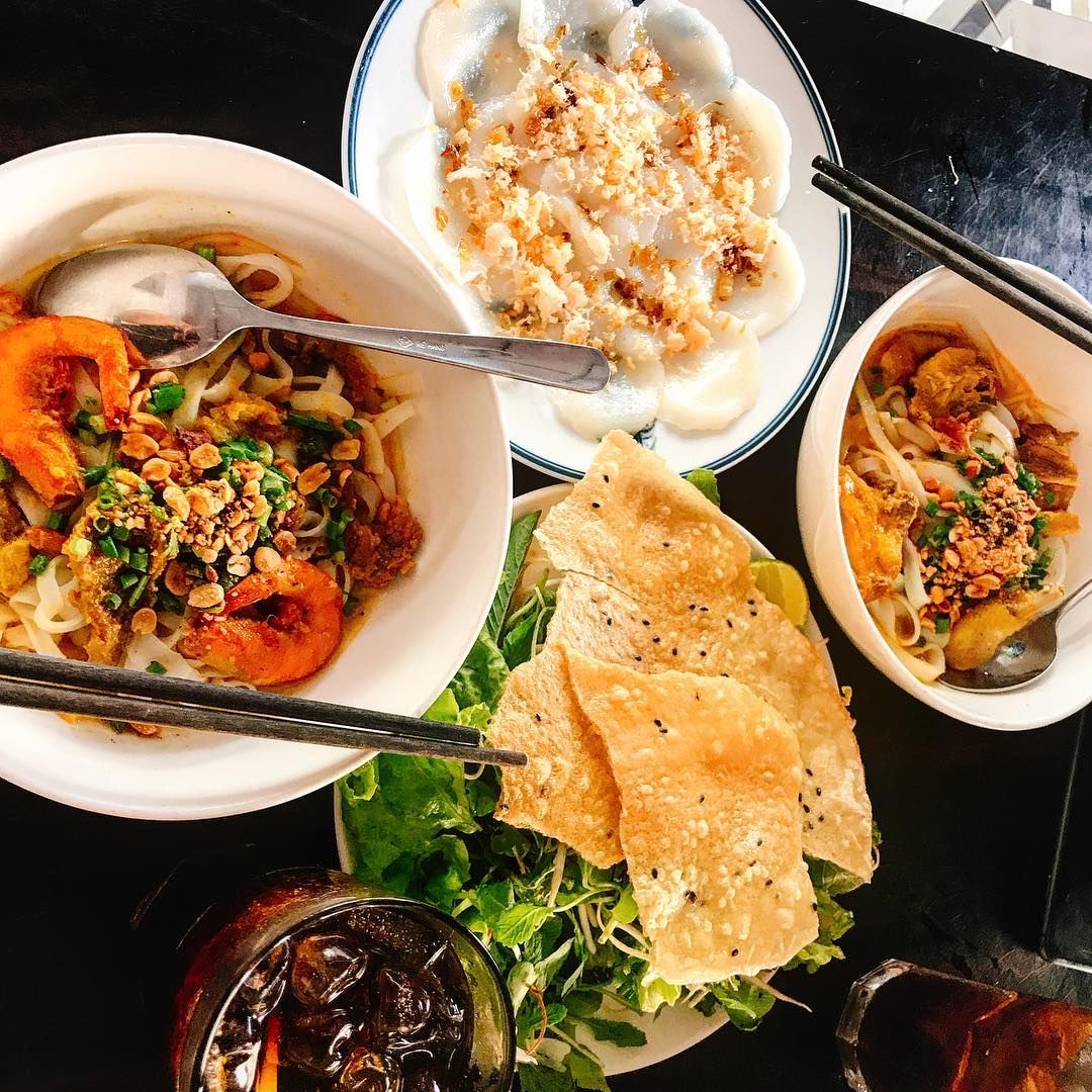 “Mi Quang” (Quang-style turmeric noodles) is a dish you are unlikely to find outside Hoi An. Similar to “cao lau,” this dish is constructed from locally sourced rice noodles combined with fresh herbs and greens. Traditionally, “mi Quang” consists of yellow rice noodles, a light broth flavored with fish sauce, and a variety of meat options, including chicken, pork, or beef, complemented by fresh herbs. As culinary creativity expands, “mi Quang” now features diverse toppings such as squid, boiled quail eggs, and frog legs. A perfect bowl is often topped with assorted herbs like basil, peanuts, and sliced banana flowers.