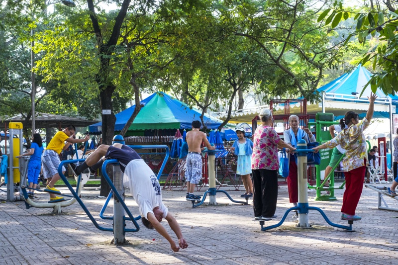 People exercising in a park in Vietnam