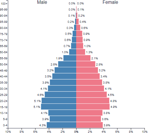 Slowing population growth rate shown in population pyramid – Source: populationpyramid.net