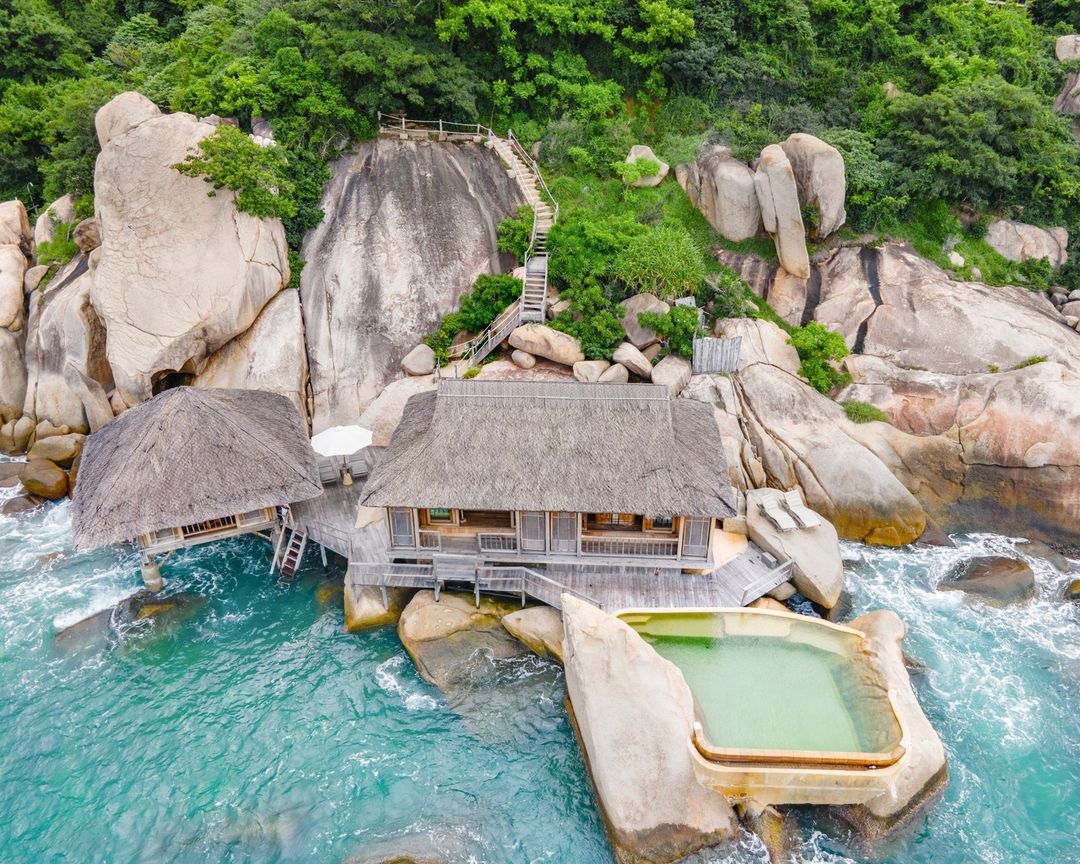 Six Senses Ninh Van Bay features a total of 62 eco-friendly villas, each thoughtfully designed in a minimalist style with charming thatched roofs and wooden walls. These accommodations blend seamlessly into their natural surroundings, offering guests beautiful views of the rocky outcrops and lush greenery. Each villa is equipped with high-end amenities to ensure a luxurious and restful stay.