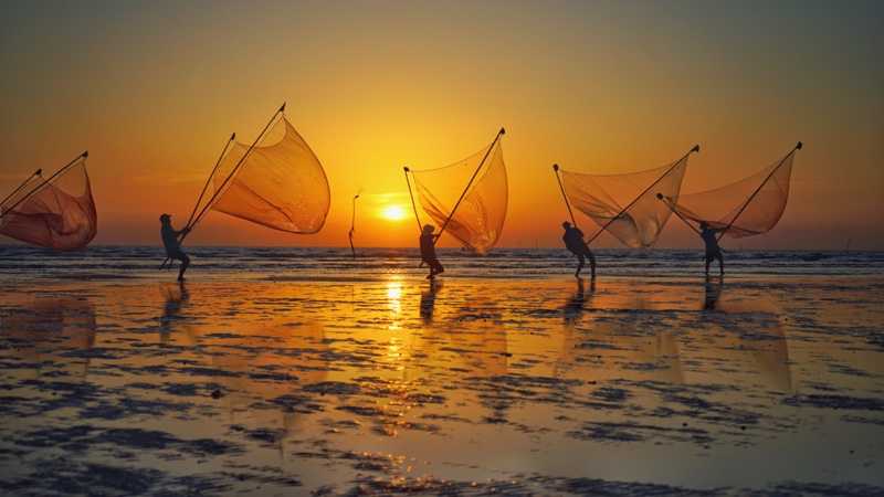Local people catch fish in Tien Giang