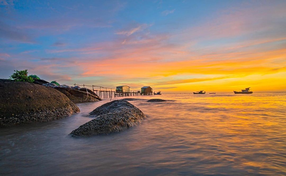 In the southern tip of Vietnam lies Phu Quoc Island, where you can witness dazzling sunsets over the shimmering sea. The island boasts numerous tranquil beaches, including Bai Khem, Long Beach, and Ong Lang Beach, perfect for leisurely strolls as the sun sets each evening.