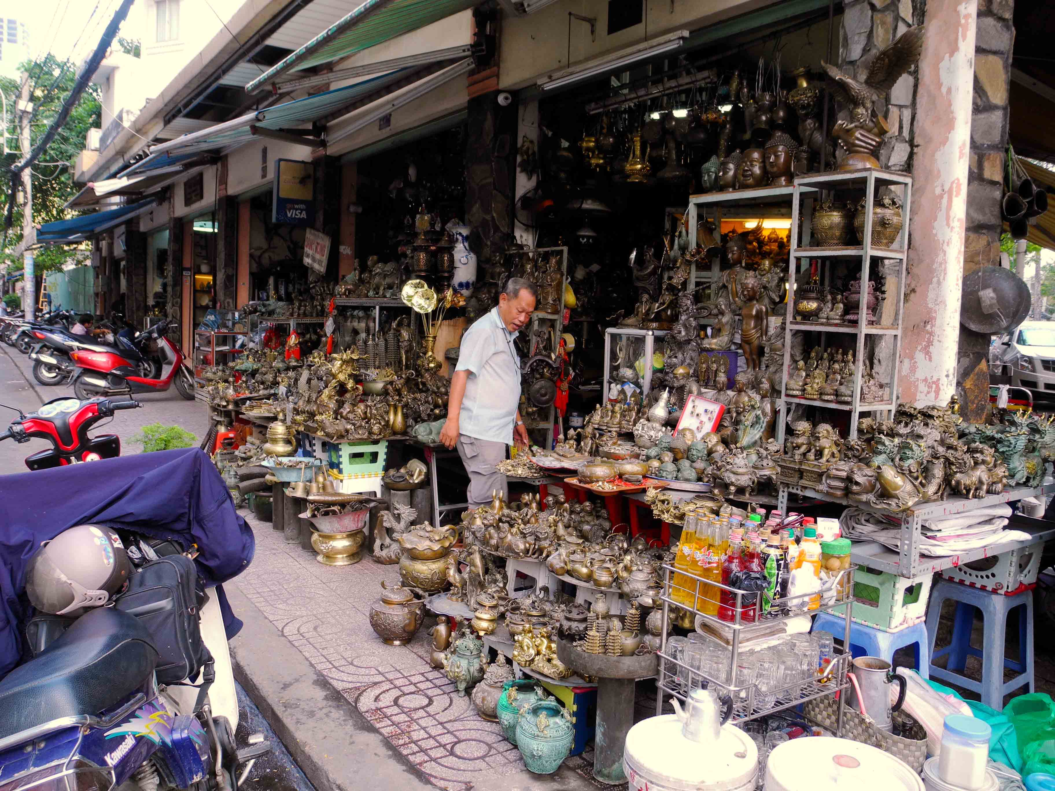 In striking contrast to many bustling shopping areas filled with mass-produced items, Le Cong Kieu Street in District 1 is brimming with historic lacquered and artisanal objects dating back centuries. While many antique shops here lack clear signage, each shop specializes in unique items.