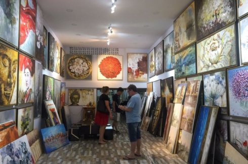 Home to numerous painting and frame workshops, Tran Phu Street is known as a central hub for contemporary art in Saigon. This street showcases a diverse collection of oil and silk paintings, along with traditional Vietnamese calligraphy. Visitors can easily browse artworks by theme, artist, and exhibition. There are also affordable reproductions of famous works by renowned artists like Da Vinci, Van Gogh, and Picasso.