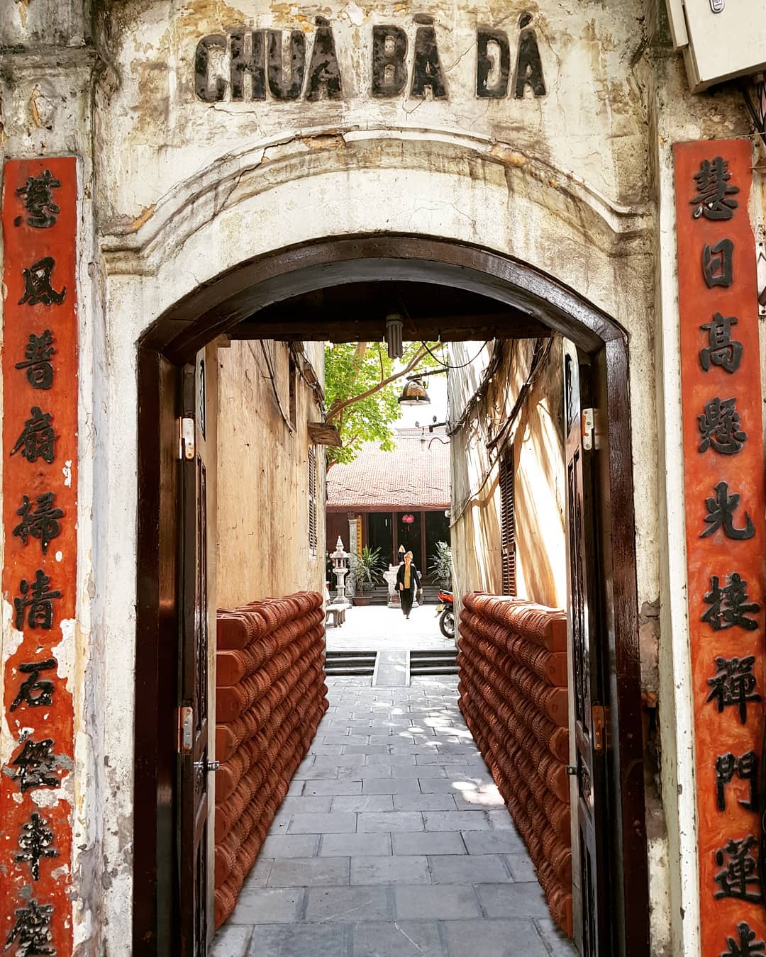Ba Da Pagoda, located at 3 Nha Tho Street, traces its origins back to the Ly Dynasty (1010 – 1225) and has been reconstructed multiple times. The story tells of a large stone resembling a woman found during the Thang Long citadel's construction, believed to be a divine sign. To honor the Goddess of the land, the locals built a pagoda named Ba Da (The Stone Lady). Despite the stone's disappearance during renovations and eventually being lost in a fire in the early 1900s, a statue of Buddha now stands in its place, although the original name endures. The pagoda holds historical significance as it was visited by Ho Chi Minh in the 20th century to engage with the monks in his revolutionary efforts against French colonialism. Ba Da Pagoda is currently the headquarter of the Municipal Buddhist Association.