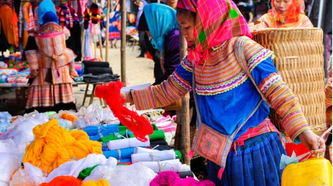 People are shopping at the Bac Ha market, Lao Cai, Vietnam