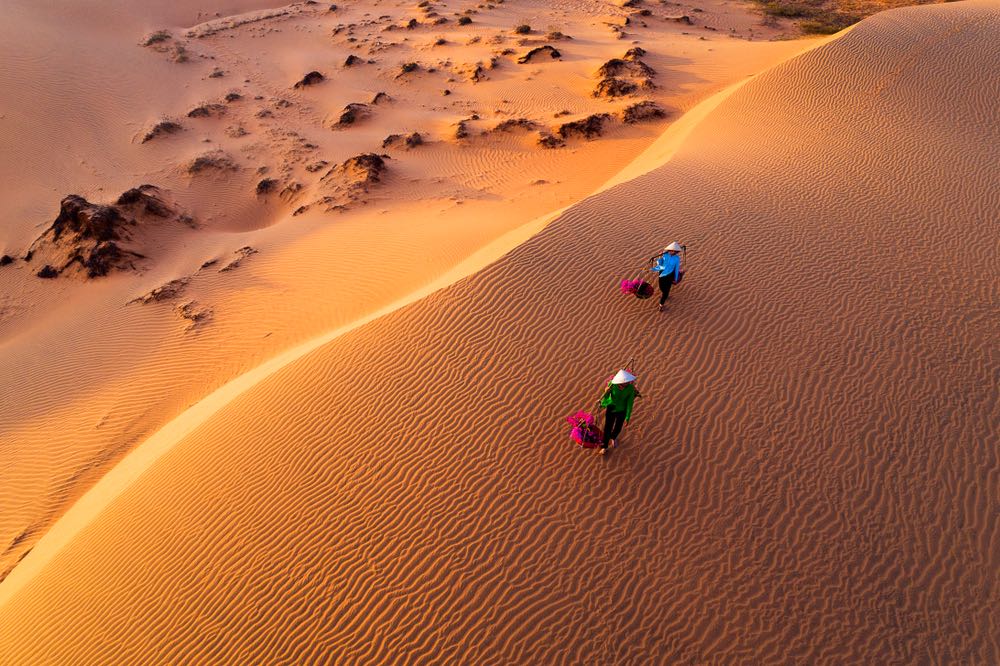 Women carrying flower baskets along the sand dunes in Mui Ne - Photo: pradeep_kmpk14 / Shutterstock.com