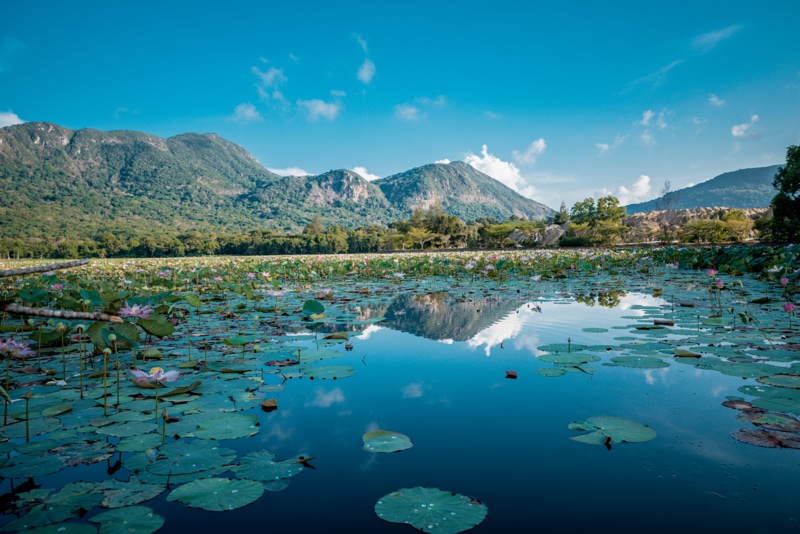 The main road on Con Son island stretches through the inhabited areas, making it suitable for a scenic motorbike tour. As the evening breeze cools the heat of the day, rent a bike from local shops and ride along the coast. Along the way, you’ll encounter lotus lakes, rugged cliffs, and untouched sandy beaches. Don’t forget to take breaks to immerse yourself in the beauty of the evening sunset.