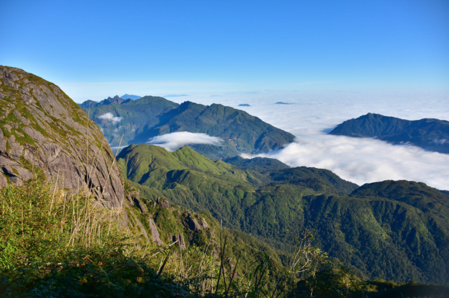 Plant species vary according to altitude: at the base of the mountain, you can find jackfruit trees, bombax ceiba (cotton trees), and pterocarya; below 700 meters, lush rainforests with dense vine growth dominate; from 700 to over 2,000 meters, gymnosperms such as fokienia and pine trees become prominent; and above 2,800 meters, dwarf phyllostachys (25-30 cm high), various species of roses, and chrysanthemums flourish. Moreover, climbers can enjoy beautiful orchids, rhododendrons, and wildflowers along the ascent, particularly during spring.