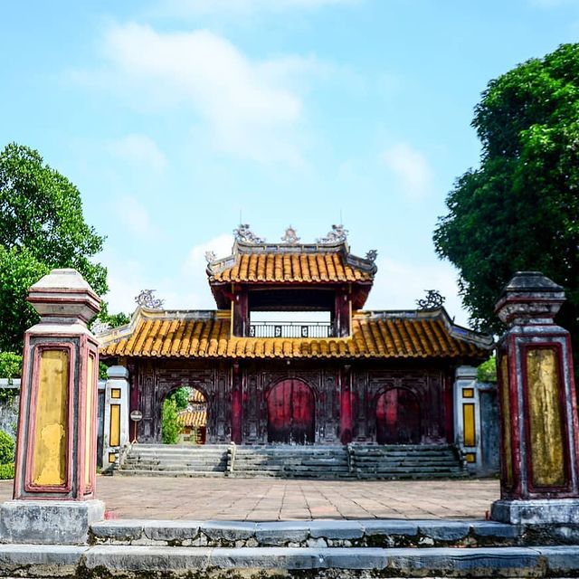 Despite being the most remote among the tombs of the emperors, Gia Long Tomb stands out for its stunning natural surroundings, characterized by vast mountains, pine forests, and pathways adorned with grass and wildflowers. The complex, surrounded by 42 mountains and hills, derives its name from the largest mountain within it: Dai Thien Tho.