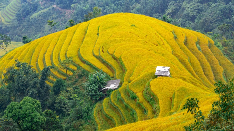 Hoang Su Phi’s terraced rice fields are renowned for their expansive beauty, covering an area across six communes: Ban Luoc, Ban Phung, Ho Thau, Nam Ty, San Sa Ho, and Thong Nguyen. These stunning landscapes, especially during the golden rice season in September and early October, earned the designation of National Heritage on September 16, 2012.