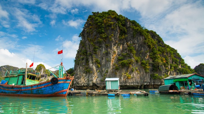 Floating village on the sea around Cat Ba island, Hai phong, Vietnam