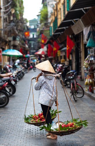 Hanoi Old Quarter - a blend of street vendors and flowing motorbike traffic