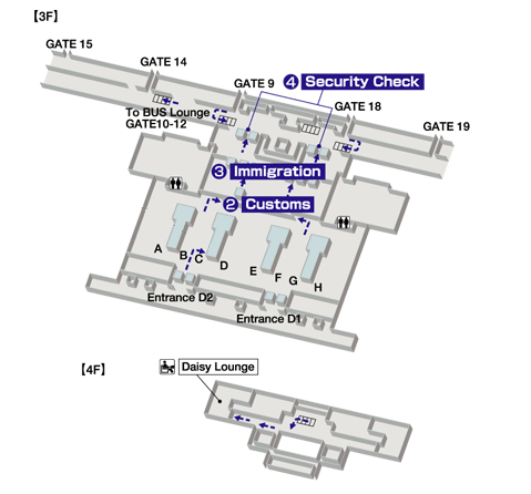 The third level is designated for departures, while the fourth level accommodates the lounge area. After check-in, passengers will clear customs and immigration, a process that typically takes less than 15 minutes. Following this, passengers proceed to security checks and can then make their way to the boarding gates.
