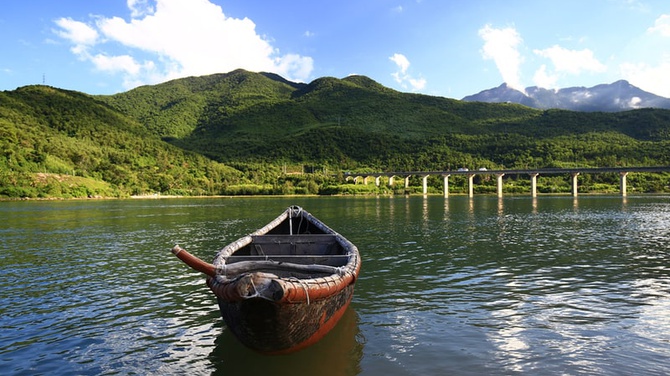 Small wooden boat on the Lang Co Bay, Hue, Vietnam