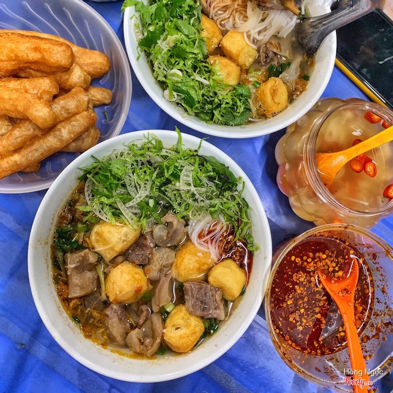 A hearty bowl of crab paste vermicelli soup is a satisfying option for late-night snacking. This dish features a clear, tangy broth that is both flavorful and filling. A serving typically costs around 55,000 VND, making it an excellent choice for those seeking a midnight snack.