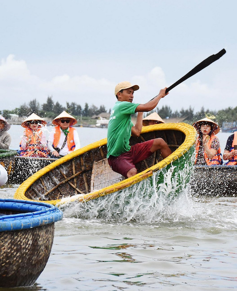 Located just 5 km southeast of Hoi An ancient town, Cam Thanh Village is an eco-village enveloped by the lush Bay Mau coconut forest. The serene ambiance, teeming with verdant greenery, is enhanced by the sight of bamboo basket boats gliding through the coconut groves.
