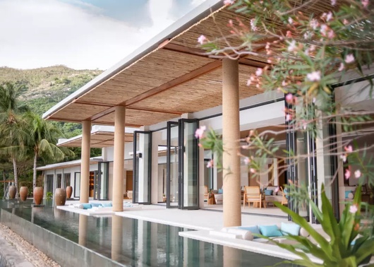 These beachfront private villas are situated within a serene landscape adorned with lush palm trees and verdant grass, creating a tranquil contrast to the vibrant blue of the sea. To provide insulation from the intense Nha Trang sun and warm winds, the villa roofs are outfitted with high-quality, heat-resistant grass, while the interiors utilize natural materials for optimal temperature control.