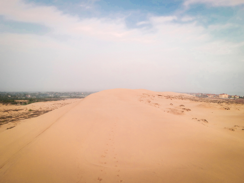 Located 10km from Nhat Le Beach, Quang Phu Dune is one of Vietnam's most beautiful dunes known for its unspoiled charm. The sand stretches out, reflecting sunlight and contrasting beautifully with the greenery of wild bushes. Visitors can experience the shifting hues of the sand throughout the day and enjoy both serene walks and exciting sand sliding activities.