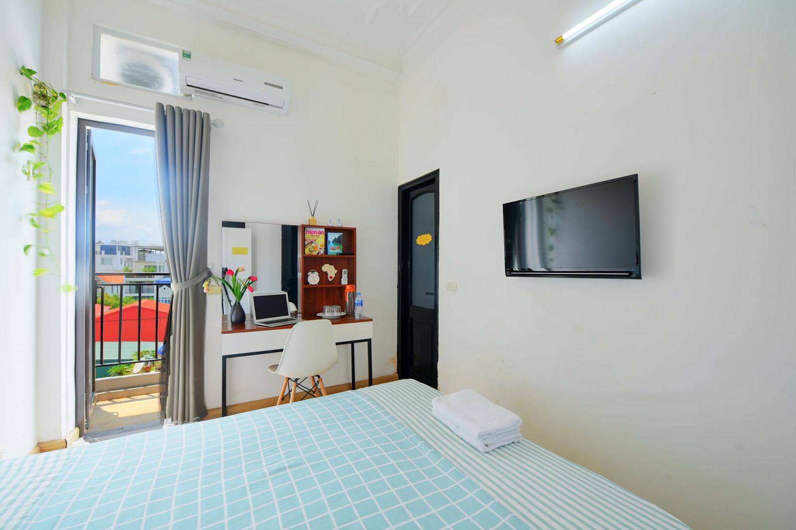 For budget-conscious renters, this classy two-bedroom apartment stands out among other accommodation options in Hanoi. It features a lush rooftop, perfect for stargazing or sunbathing. With two large windows in both the bedroom and sitting room, natural light is abundant.