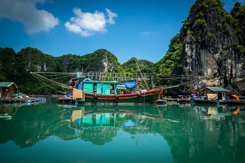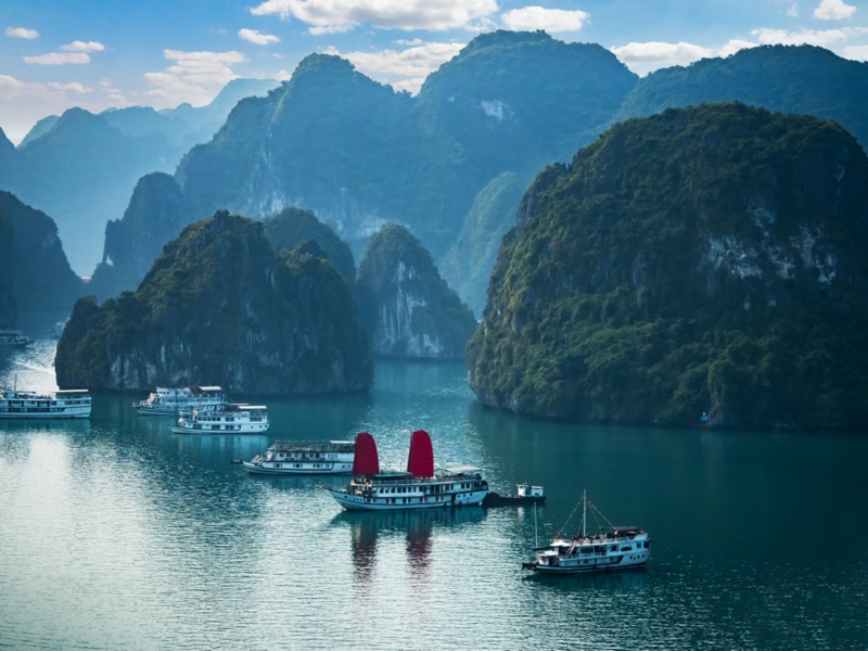 After breakfast, transfer from your hotel to Halong Bay. Arrive at noon and board our traditional wooden cruise. Enjoy a day of relaxation, sightseeing, and swimming. Visit the floating fishing village and swim if the weather permits. All meals are included. Overnight on board.