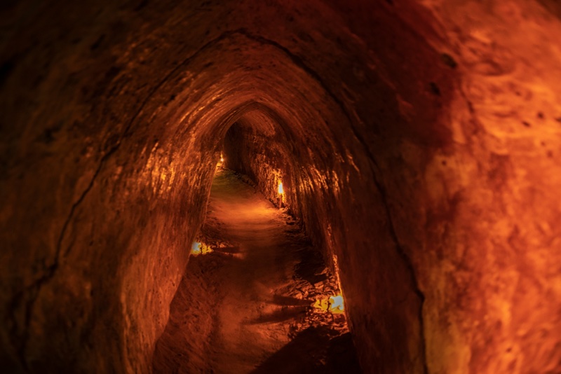 Morning transfer to the Cao Dai Great Holy See Temple, one of the most striking structures in Southeast Asia. Experience the vibrant midday ceremony conducted by Cao Dai followers. In the afternoon, visit the legendary Cu Chi Tunnels, a network where the Viet Cong hid during the Vietnam War. Watch an introductory video about the tunnels' construction, followed by an hour to explore the site. Enjoy tea and cassava, the guerrilla food from wartime, before returning to your hotel in Saigon. Dinner is at your own expense. Overnight in Saigon.