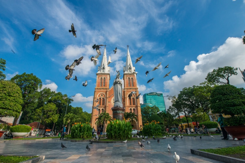 Morning transfer to the airport for your flight to Saigon. Upon arrival, enjoy a day tour of the city, visiting highlights such as the Notre Dame Cathedral, the Central Post Office, the Reunification Palace, and the War Remnants Museum. Lunch is at a local restaurant. Dinner is at your own expense. Overnight in Saigon.