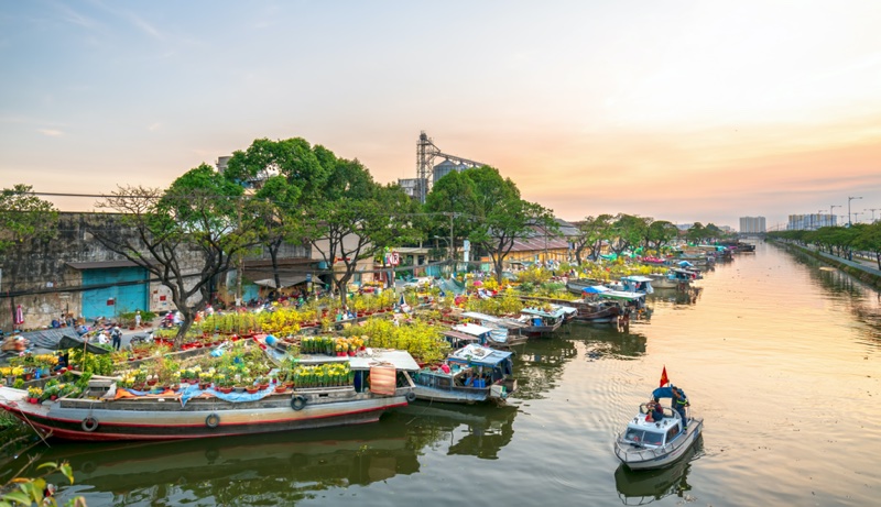 Colorful flower boats during Lunar New Year in Ho Chi Minh City